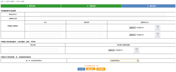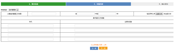 (1)从事组织管理工作的年限需所在单位提供证明资料进行上传验证,美术组织工作成就部分需就活动本身以及获得的业绩奖励填写清楚。