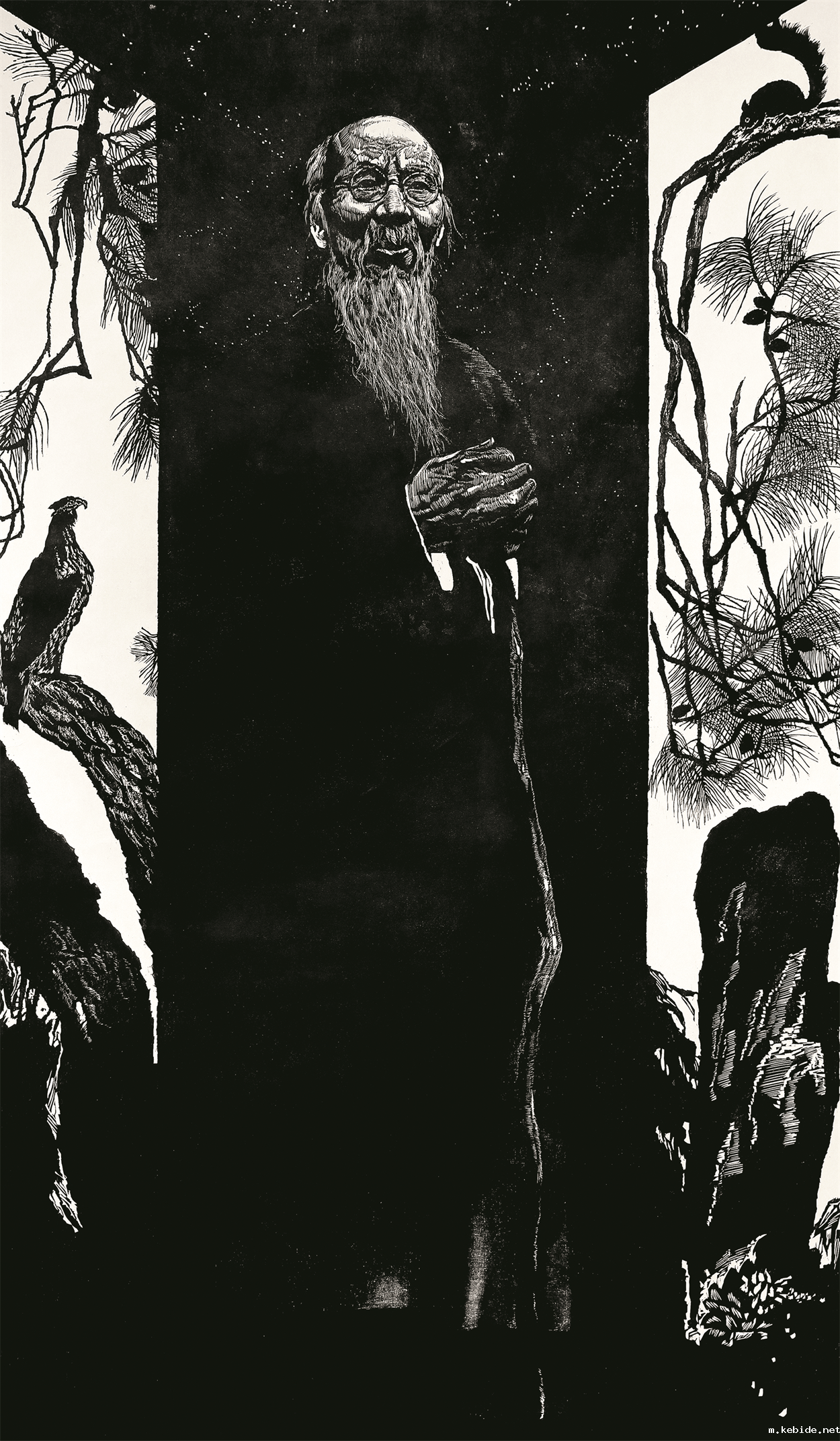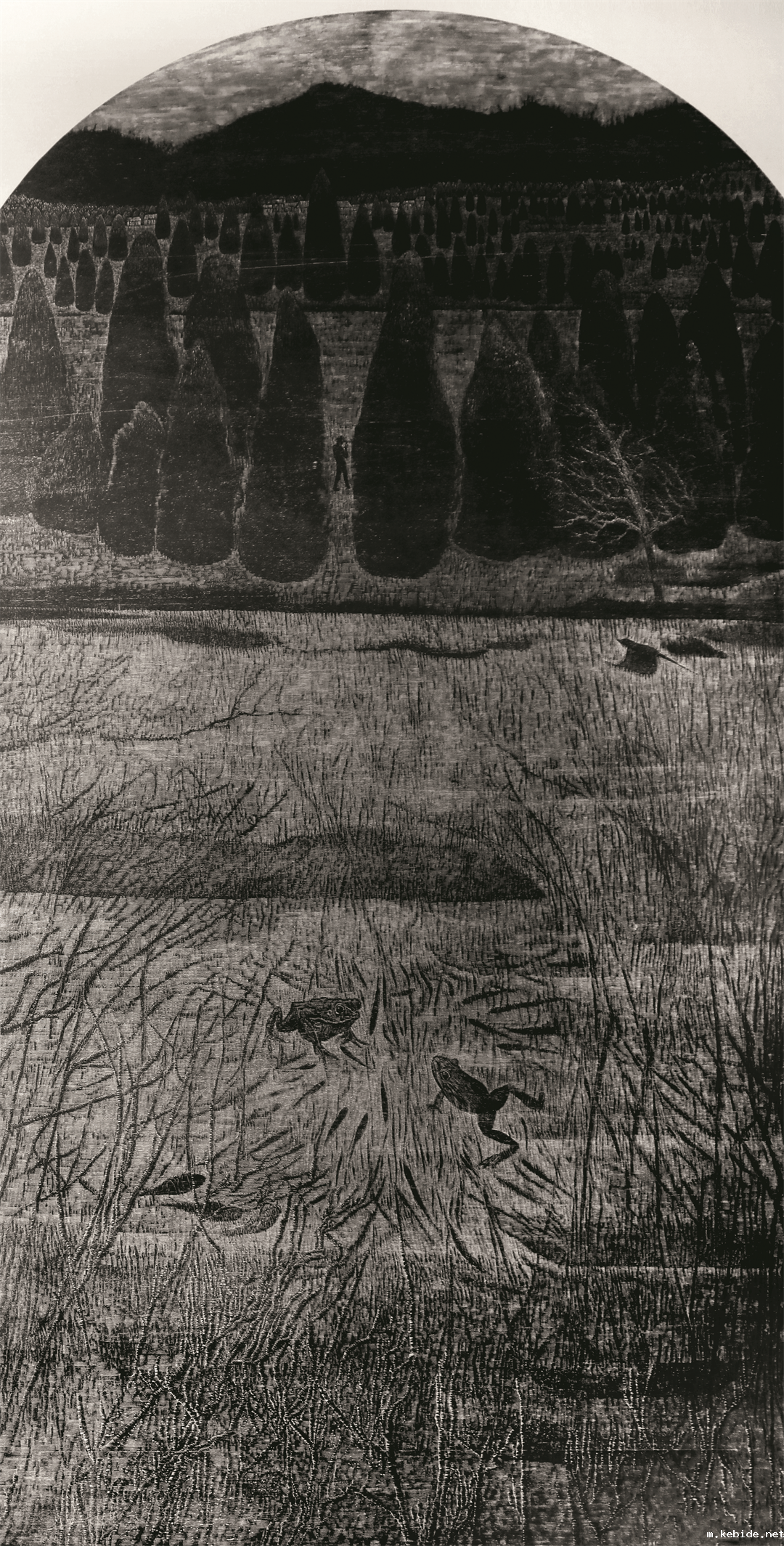 李岱(辽宁省) 静听水无声之一 黑白木刻 110cm×60cm 2022 年