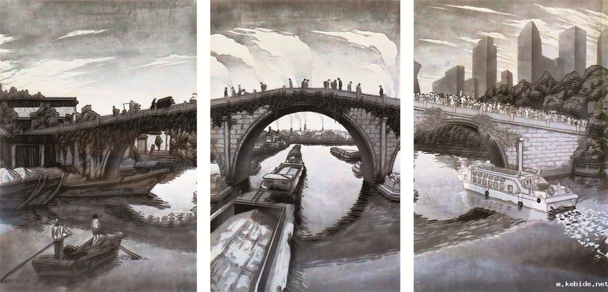 许晨韬(浙江省) 拱宸百年 水印木刻 90cm×180cm 2021 年
