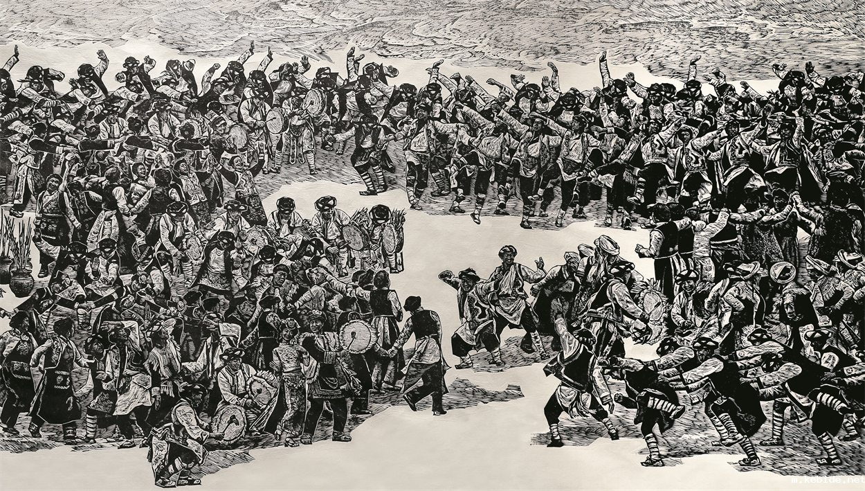 毕海强(云南省) 乡村舞蹈 套色木刻 97cm×163cm 2019 年