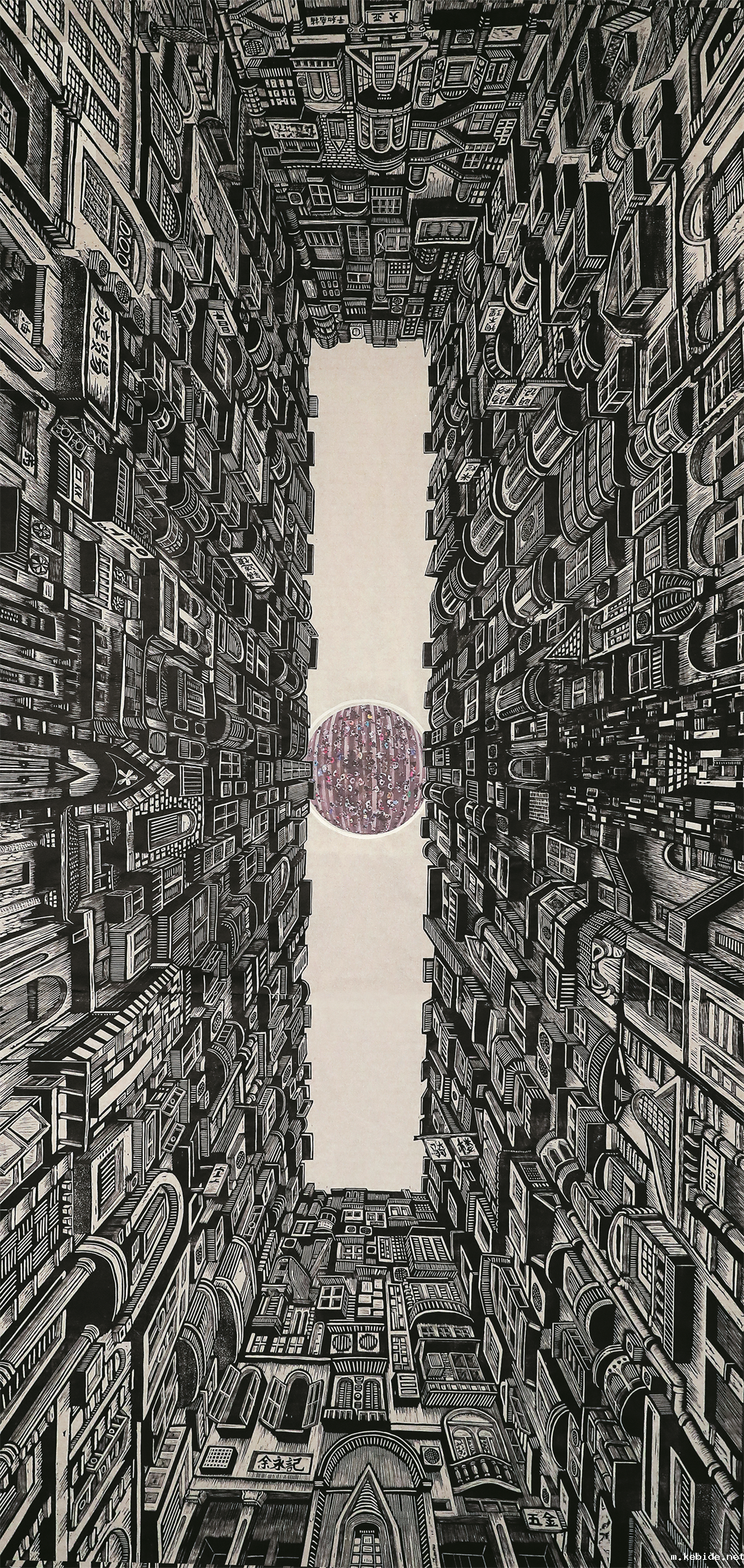 曾学森(广东省) 围城——迷失于楼宇间的情感 木刻版画 245cm×110cm 2022 年