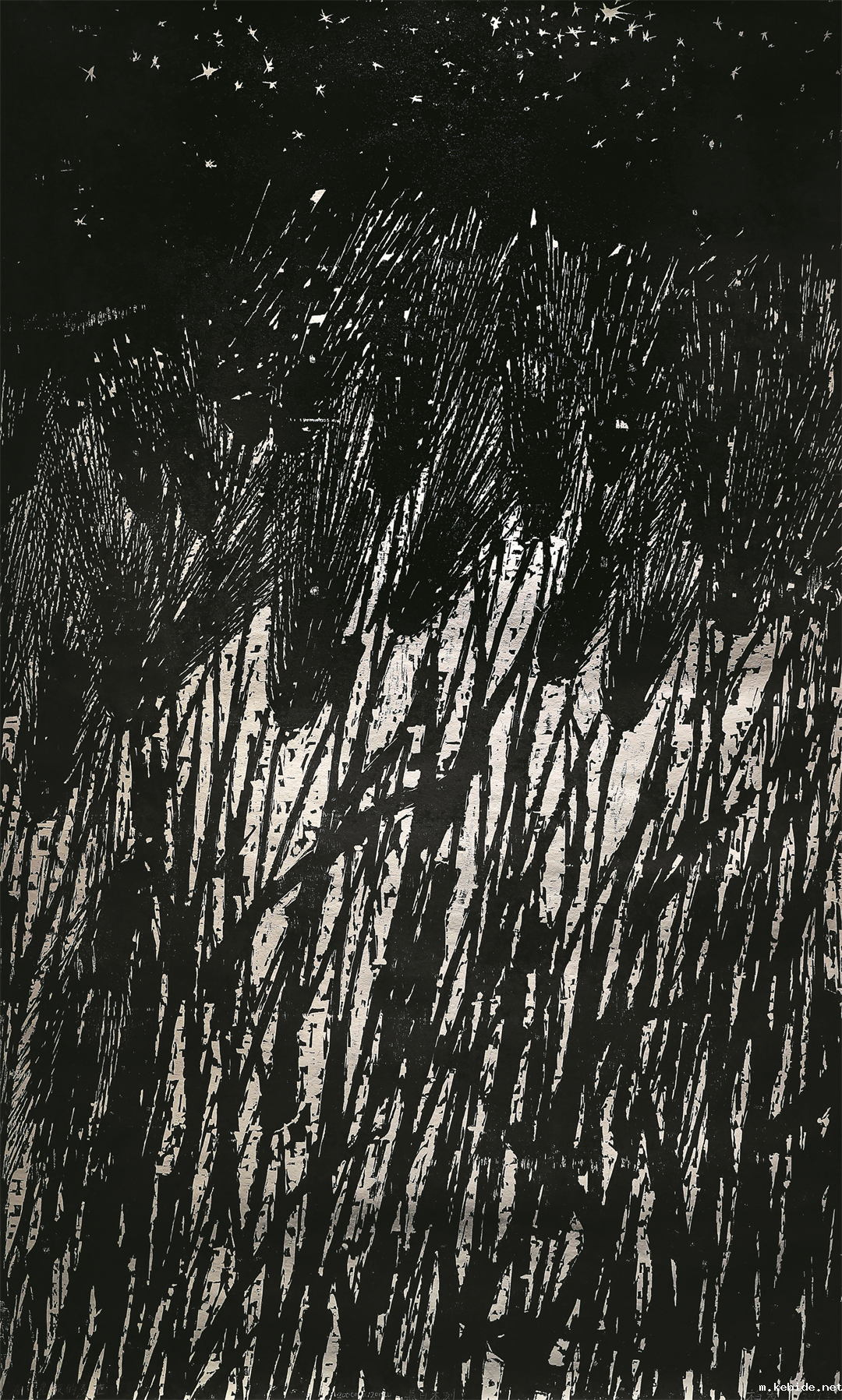 柏发(陕西省) 星夜的麦芒 黑白木刻 200cm×120cm 2019 年